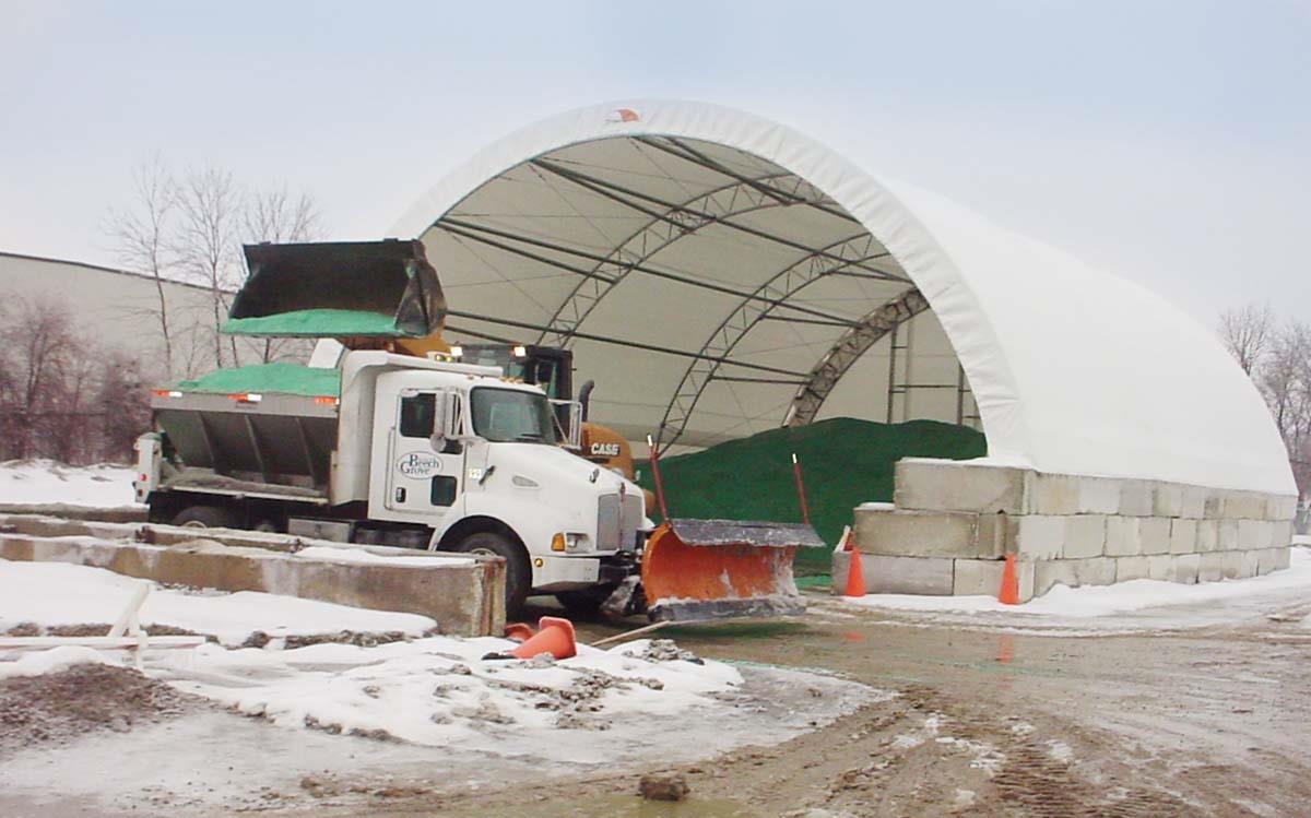 With an outdated salt storage building, the City of Beech Grove decided it was time for an upgrade. Explains Public Works employee Thomas Wilson, “We had a wood and metal structure that was built in the early ‘80s. The metal siding was coming off of the timbers and the timbers themselves were decaying.” After seeing a ClearSpan structure nearby, Wilson went online to do more research.