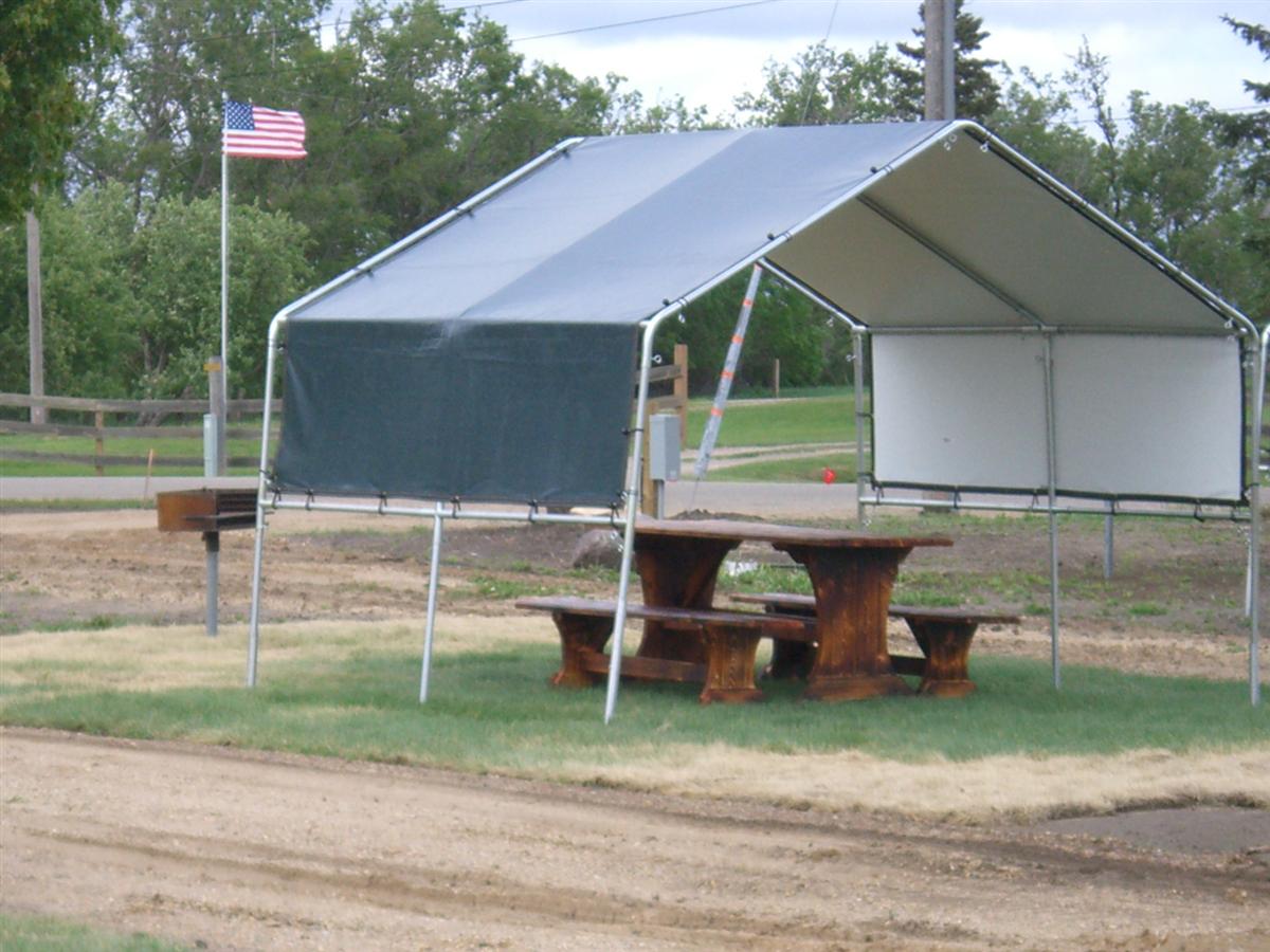 After explaining the situation to a National Account Manager, custom ClearView Panels became the solution to their winter-weather woes. “It was incredible,” says Blaine. Not only did it keep the snow out, but it also kept a lot of heat from escaping the restaurant. It even stays warm enough that people sit on benches in the enclosed walkway when it’s -10° out and look at the horses and Christmas decorations. He adds, “we couldn’t live without our ClearView Panel enclosed walkway. It saves us money on our heating bill, leaves us with no more snow to shovel and it’s attractive and pretty durable.” The next project the Larsons added to their recreational destination was a campground across the street from their restaurant. Through the use of WeatherShield Canopies, they devised a way to protect their beautiful spruce picnic tables from the sun and rain. “People love sitting under them,” according to Blaine. “They still feel the air and have nice visibility.”