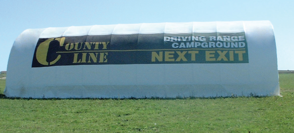 Wanting to further expand their business, the Larsons decided to add a driving range to their stretch of land parallel to Interstate 29. Without a nearby exit off of the interstate, Blaine and Jennifer had been wondering how to best advertise their location to cars passing by. When they saw the ClearSpan Storage Master Building with custom cover options, they realized that they could “kill two birds with one stone”—provide shelter from weather conditions for people hitting golf balls and also let motorists know that they had to get off at the next exit.