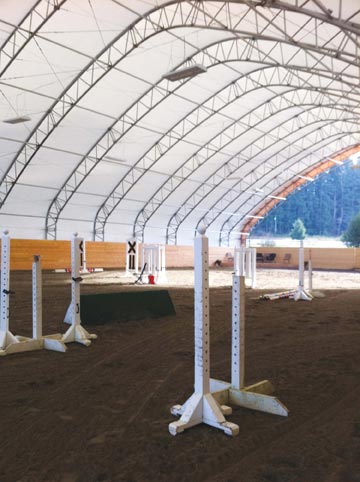Cutter Creek Farm, LLC is a hunter/jumper horse training facility located on the northern West Coast. Annie Alvord, the owner and head trainer at Cutter Creek, travels with her clients and their horses to compete up and down the coast. In order to keep the horses and riders in shape throughout the cold winter months, Alvord needed a covered riding arena to provide warm and dry riding space.