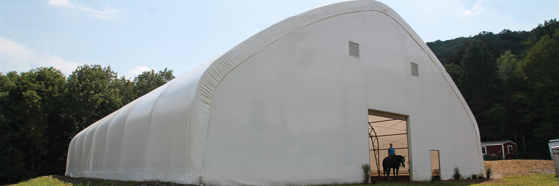 Cecchini explains, “Before, we only had a very small indoor building, no bigger than a round pen. The business was growing so fast and I knew I needed something much bigger.” Since ClearSpan’s corporate headquarters are located in Connecticut, Cecchini had already heard of the company. After doing her research, she knew a Hercules Truss Arch Building from ClearSpan was the perfect choice. Cecchini says, “We chose a ClearSpan building because of the natural light inside and temporary nature of the structure. If our needs change, the building can be moved. Also, the maintenance on fabric structures is much simpler than that of a wood building.”