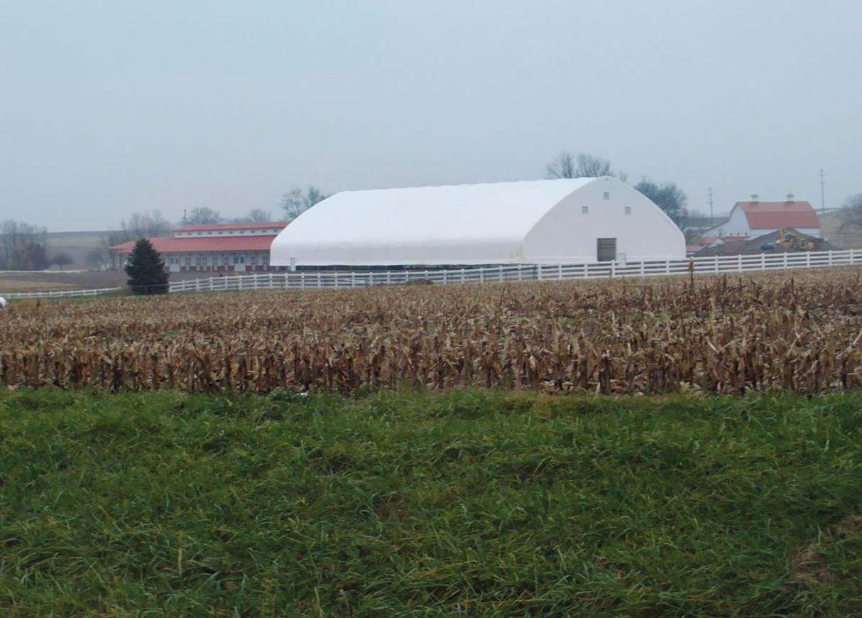 Mr. Cronin set out to find the perfect indoor arena. He says, “I had seen ClearSpan Fabric Structures in various magazines, so I looked at their buildings along with a number of other manufacturer’s structures. I was very pleased with the quality of construction of ClearSpan’s Hercules Truss Arch Buildings.” Doug chose a 100′ wide by 210′ long ClearSpan structure for his facility’s new riding arena, which is attached to their 37-horse stable.
