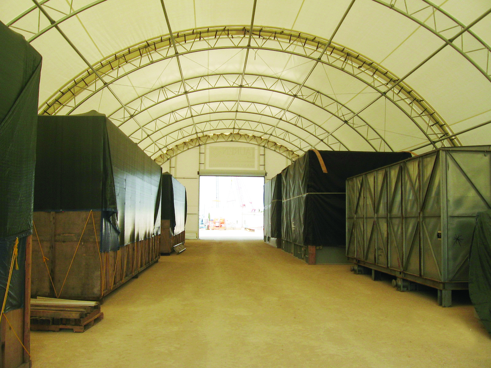 Since August 2009, Garrison and Lauren Engineers & Constructors, Inc. have been utilizing a 65′ wide x 160′ long ClearSpan Hercules Truss Arch Building for all of their storage needs, and the building is working out wonderfully.
