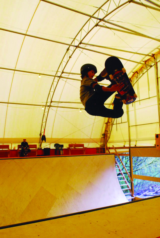 Stein is pleased with many of the features of the building. “The cover lets in ambient light, which makes it much less expensive than having to light a facility. Also, the shadows from the trees around the structure look extremely cool. I still have the feeling that I am outside when skating on the ramp covered by the ClearSpan structure. This would have been very difficult to accomplish with a steel building.”