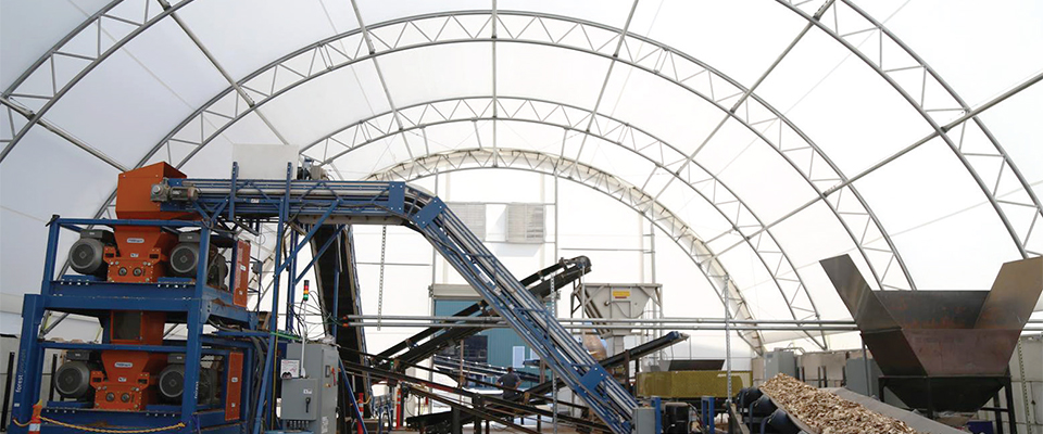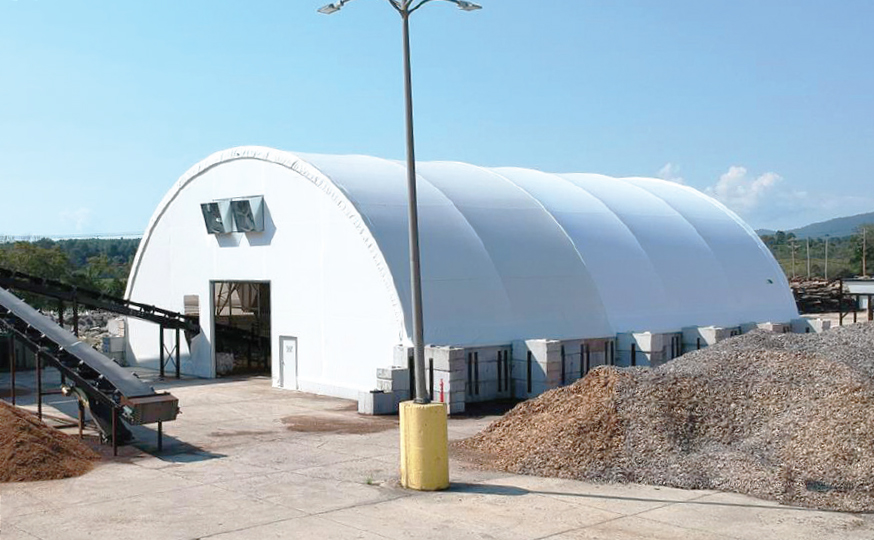 The ClearSpan Round HD Building also features excellent air flow, further promoting safety for workers. With constant ventilation in the structure, workers do not inhale the crushed woodchip byproduct that can be emitted into the air. Hensley stated, “It’s been very good for us, with the open airiness of it to help with airflow and the dust that is created through the process.”