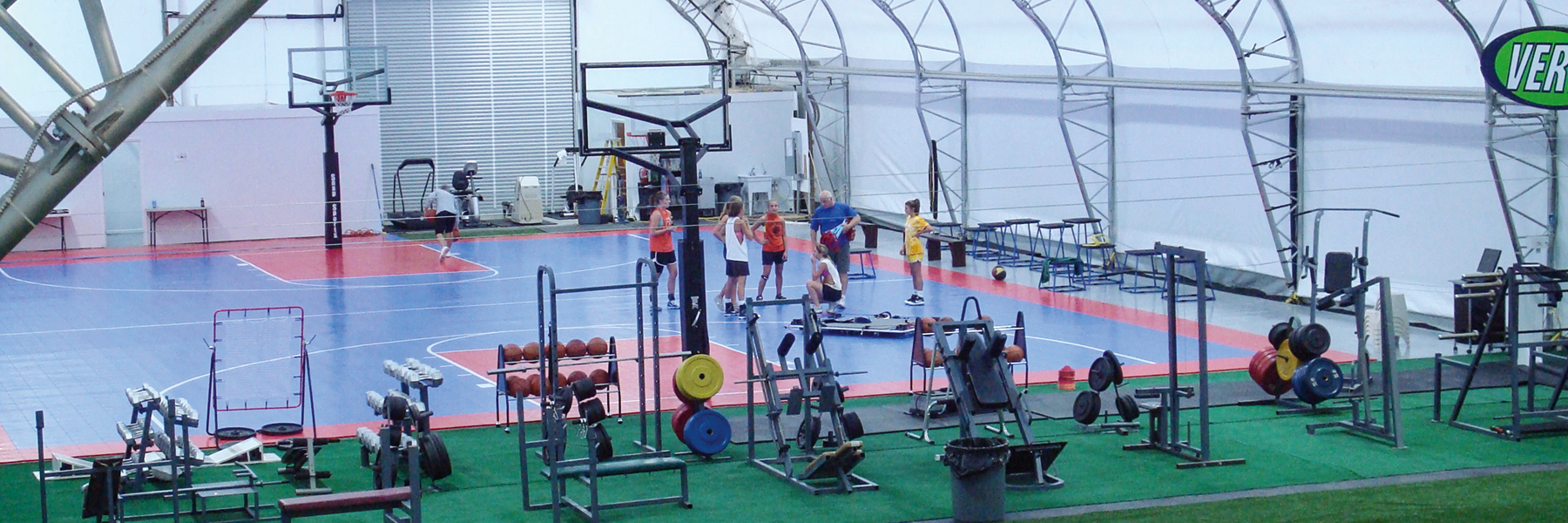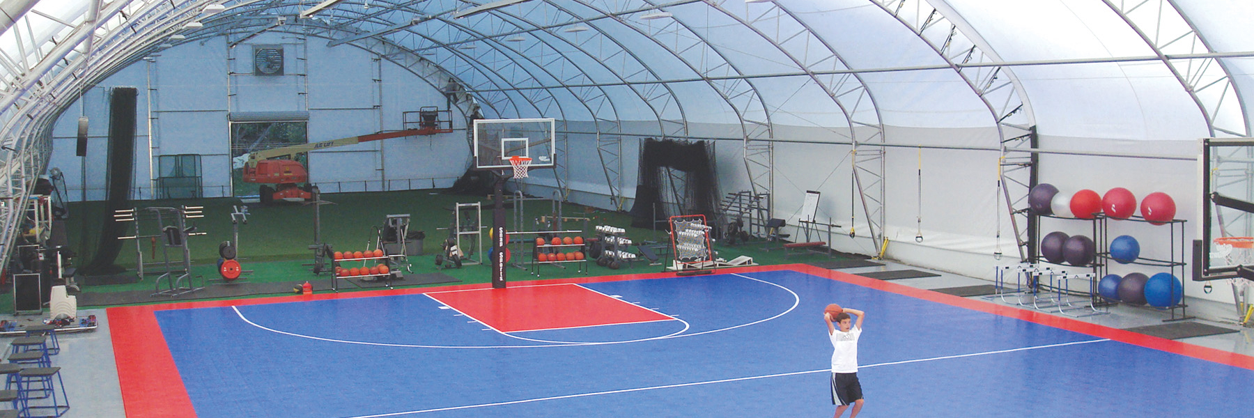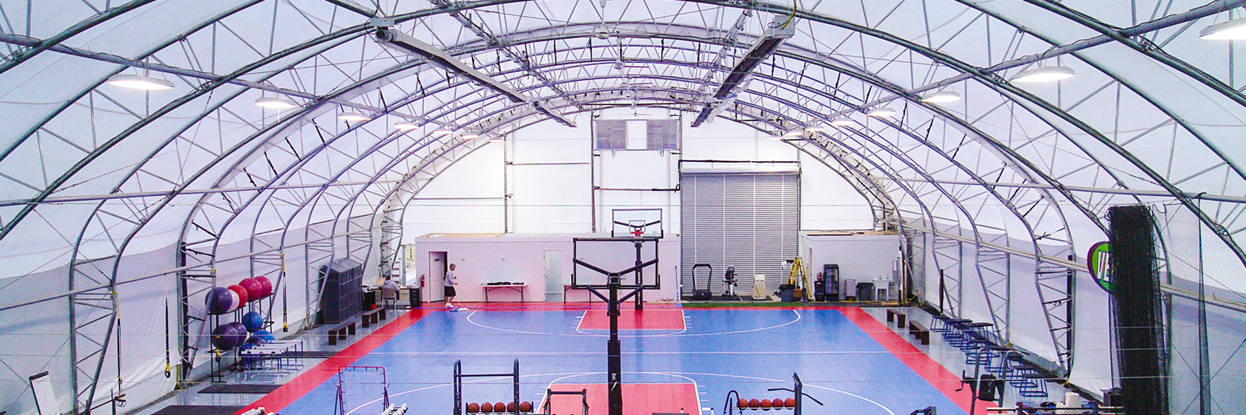 The ClearSpan athletic center offers a 60′ wide by 80′ long multi-surface area, a 72′ wide by 90′ long artificial turf area, a 2,000 sq. ft. weight room, a basketball court, batting cages and more. Peluchette explains, “We mostly cater to children and young adults, focusing on training them correctly. We also work with coaches and provide a training venue for them. The building is working out well. The height and openness allow plenty of room for training and equipment.” He continues, “Everyone likes the facility. There’s a ‘wow’ factor when you first walk in the building.”