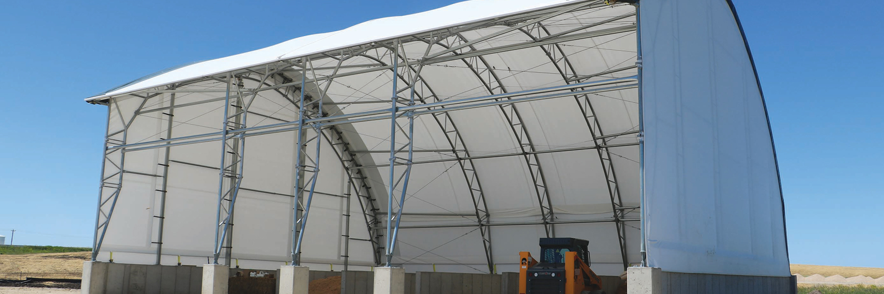 The Commodity HD Building is built with ClearSpan’s translucent, rip-stop fabric. The durable fabric cover allows light to filter through and is resilient in all climates. It can withstand corrosive aggregate materials, and when compared to traditional buildings, the fabric cover allows these buildings to be constructed in a fraction of the time.