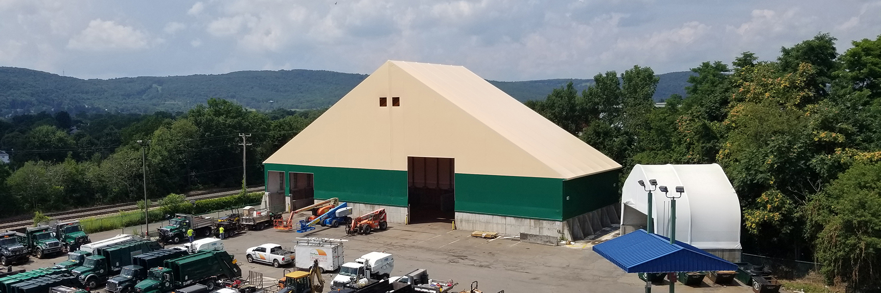 Covering the structure is ClearSpan’s exclusive Armor Shield cover, crafted from 29 oz architectural vinyl. The Armor Shield Cover consists of seven layers, including a sturdy base fabric, multiple layers of protective coating and dual-sided PVDF topcoat that increases durability and repels dirt. This creates a long-lasting tensile fabric of the highest quality.