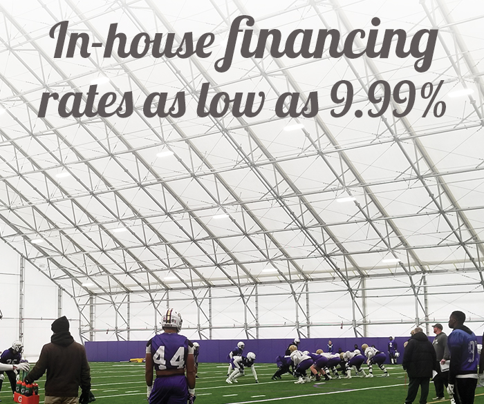 Customers are able to get a building solution when they need it most with ClearSpan’s in-house financing. Those that qualify can get rates as low as 9.99% and can finance as little as $5,000.